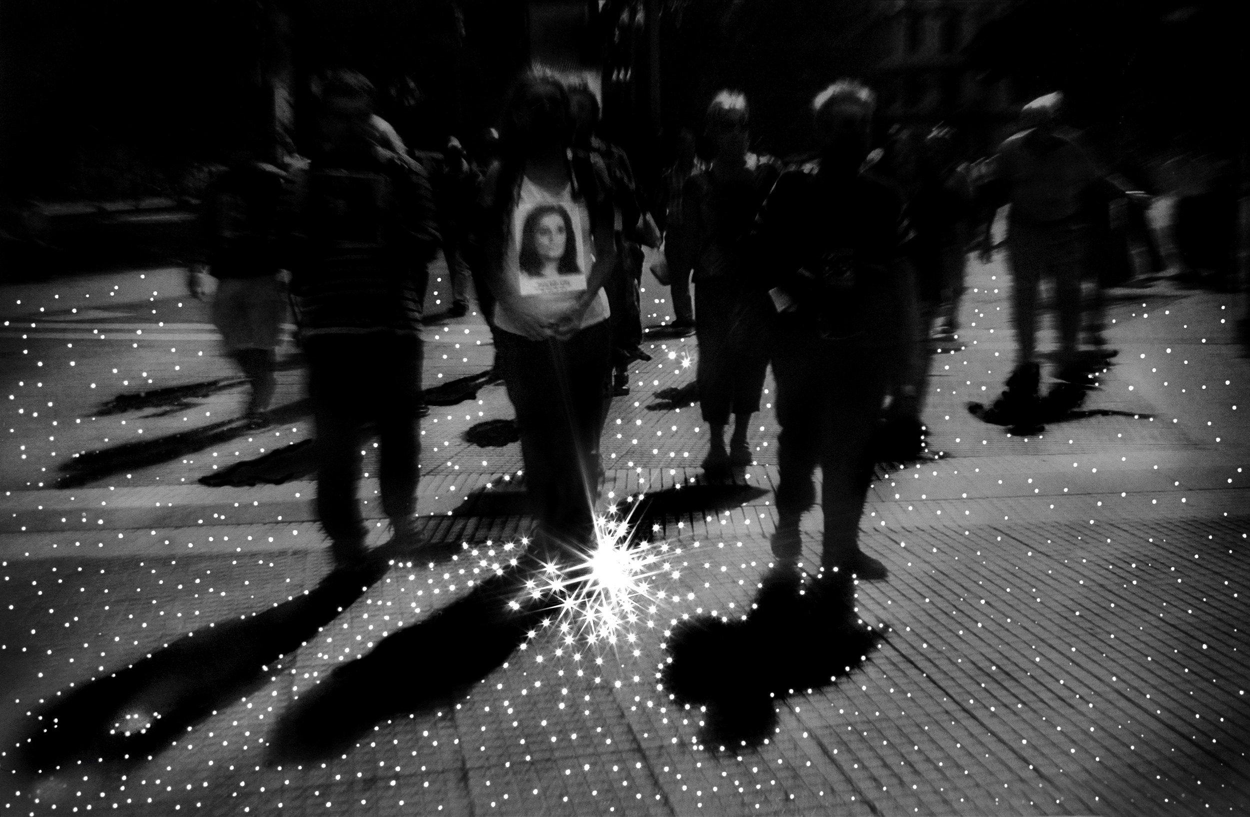 Trabajo colaborativo de la ronda de las Madres de Plaza de Mayo para la revista LaVaca Mu, que se propone transmitir el valor de la constancia, sus 40 años de la ronda de todos los jueves desde 1977. Elegí trabajar interviniendo las fotos a través de la perforación de las imágenes como acto de resiliencia y lucha para llenar de luz el valor de la constancia, la memoria, esa huella que queda en cada paso de esfuerzo de Las Madres de Plaza de Mayo. Una luz que habla de la resistencia, la fortaleza, un atravesar la violencia con la no violencia, un reclamo por la Verdad y la Justicia.